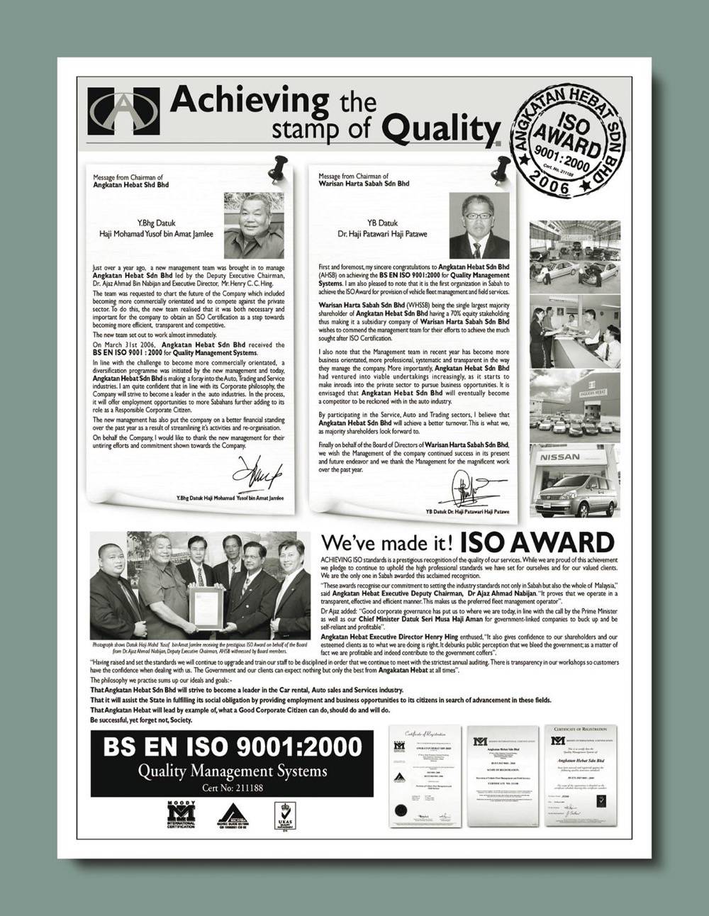 For our going green endeavours, Angkatan Hebat Services Sdn. Bhd. was award the BS EN ISO 14001:2004 for Environmental Management System in the Provision of Automobile Repair and Services category. This is a solid endorsement from Moody International. The institution that sets the international benchmark for environmental compliance.