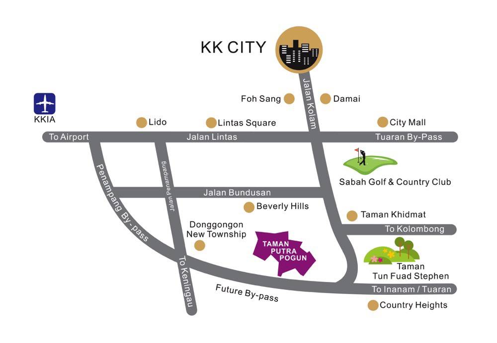 Welcome to Taman Putra Pogun, a spectacularly designed real estate in Kibabaig, Penampang located 3km from the thriving township of Donggongon, and 8km from Kota Kinabalu city centre and Kota Kinabalu International Airport.